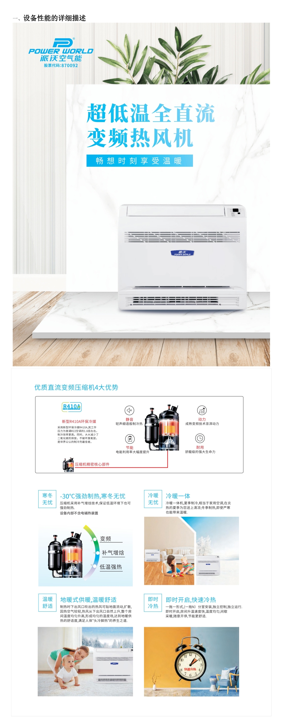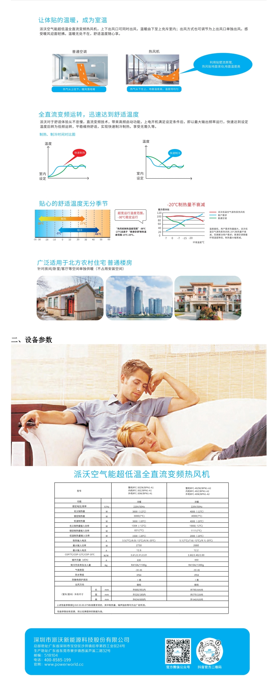 派沃空气源热风机 超低温全直流变频采暖热泵 4KW