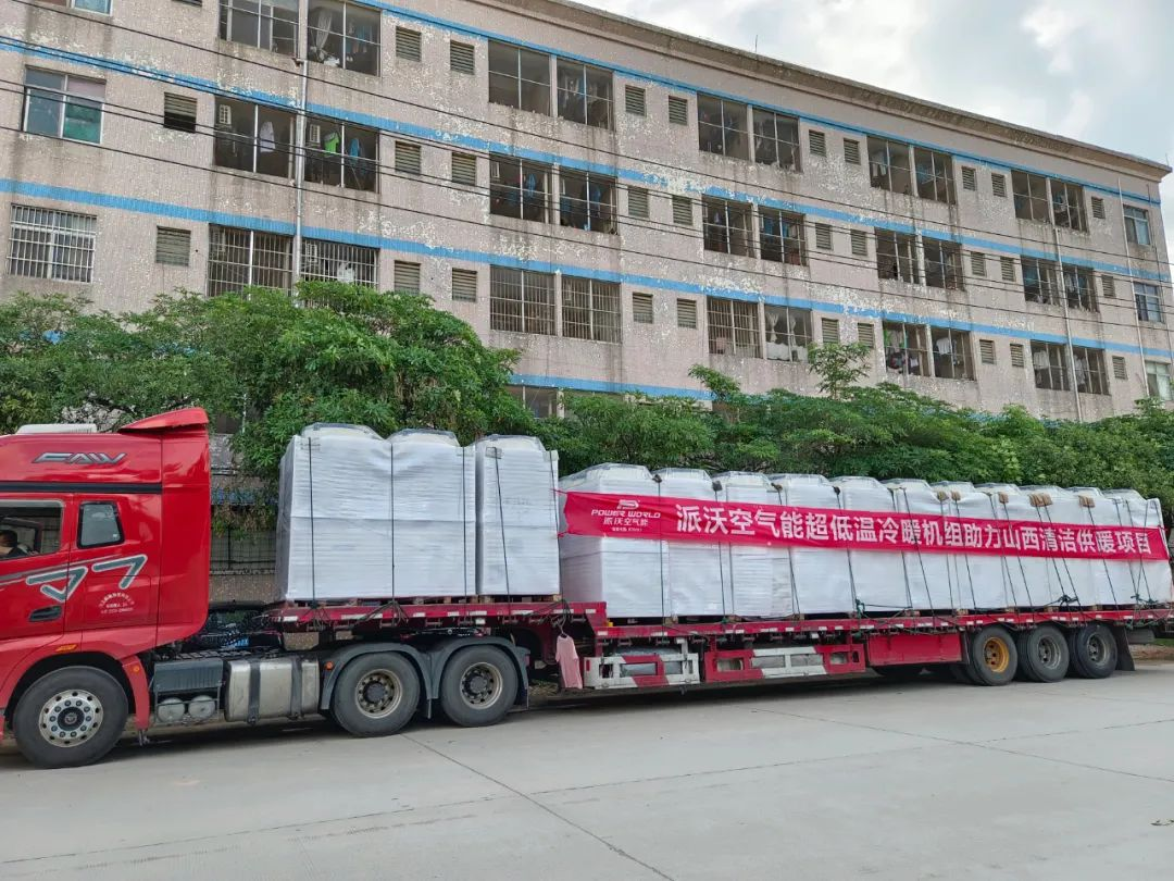 多辆货车里装满了派沃空气能热销产品——超低温冷暖机组,它们将一路向北,只为将产品更快地交付至客户手中,最后被应用于山西清洁供暖项目工程,派沃员工的心里都是充满成就感。