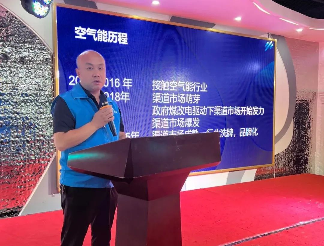 会议的开始,首先是由胡小宇胡总上台,针对空气能行业前景与机遇作出了精彩的演讲。